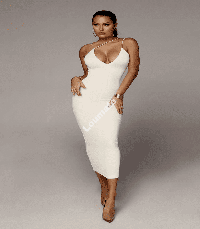 Robes décontractées Mature Sexy Sling Robe longue V-Col Halter élégant Femmes Sans manches Europe serrés. Empire, Encapuchonné, Eté, Robes bohémiennes, Manches courtes.