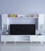 un ensemble de meubles TV avec deux étagères Livraison et Montage Gratuite, conçu dans un style minimaliste avec les dernières tendances du design, grâce auquel vous pourrez créer un espace extraordinaire dans votre salon. Il se compose d un meuble TV avec plusieurs compartiments et de deux étagères murales ouvertes, offrant un espace de rangement généreux où vous pourrez cacher tous vos objets privés et disposer facilement vos rangements.